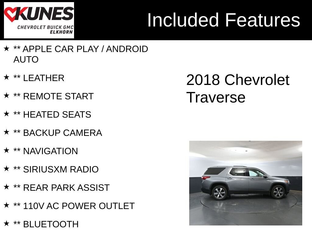 Used 2018 ChevroletTraverse LT Leather