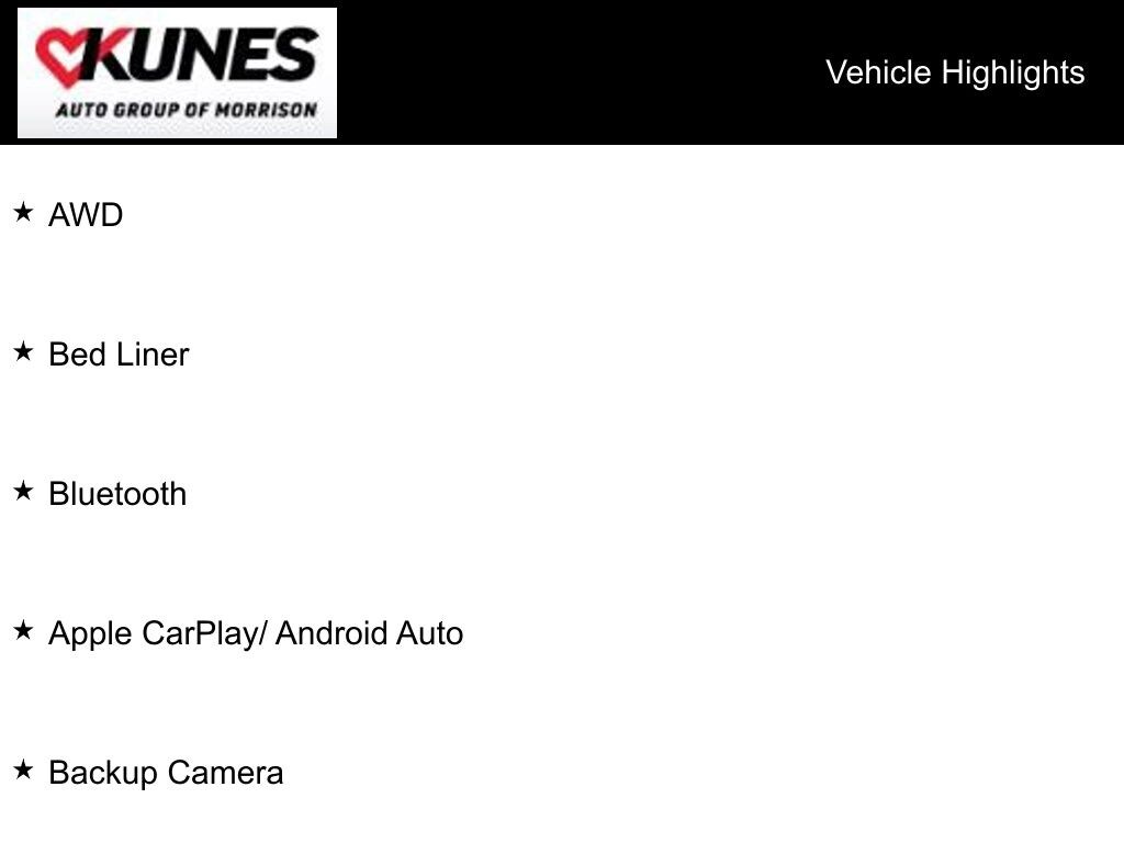 While we make every effort to ensure the data listed here is correct, there may be instances where some of the options or vehicle features may be listed incorrectly as we get data from multiple data sources. PLEASE MAKE SURE to confirm the details of this vehicle with the dealer to ensure its accuracy. Dealer cannot be held liable for data that is listed incorrectly. Listed price does not include any tax, title, license or $347.26 documentary service fee. Consult the dealer for fees, payments and complete details. * Offers or financing are subject to expiration and other restrictions. See dealer for qualifications and complete details. *Images shown may not necessarily represent exact vehicles at your dealership. See your dealer for complete details.
