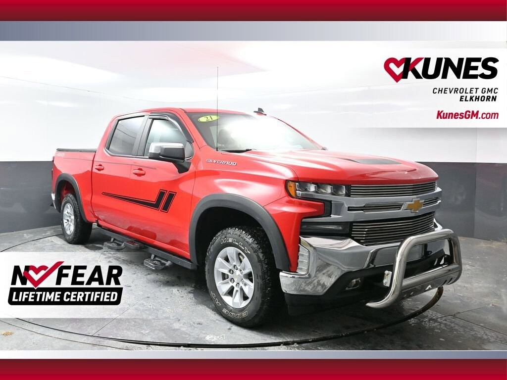 ** APPLE CAR PLAY / ANDROID AUTO, ** REMOTE START, ** HEATED STEERING WHEEL, ** HEATED SEATS, ** BACKUP CAMERA, ** SIRIUSXM RADIO, ** BLUETOOTH, ** 4G LTE WI-FI, NO ACCIDENTS, LOCAL TRADE, 8-Speed Automatic, 4WD, Black Cloth.Certified. Certification Program Details:** NO FEAR LIFETIME CERTIFIED PREOWNED **Over $2,895 of value at no cost!*LIFETIME WARRANTY!*3 Day Exchange Policy!*Complimentary powertrain warranty with ability to upgrade to fully comprehensive coverage and/or extend up to 125,000 miles!*125+ Point Inspection by our factory trained ASE Certified technicians and reconditioned to the highest standards.*Complimentary AutoCheck History Report*Complimentary AutoCheck Buyback Protection*Financing for Everyone - Guaranteed credit approval regardless of credit history!*Over 30 lenders who compete to get you the best financing terms*No payments for up to 90 days!*Weekly, Bi-Weekly, and Monthly Payment Options for all buyers!*First Free Oil Change!*Trade anytime policy - cars, trucks, boats, RVs, motorcycles - as long as we donât have to feed it, you can trade it!2021 Chevrolet Silverado 1500 LT LT1 EcoTec3 5.3L V8 8-Speed Automatic 4WD Clean CARFAX. Odometer is 8211 miles below market average!Find out why our dealerships have won DealerRater.com DEALER OF THE YEAR a whopping 10 TIMES! Call, email, or live chat with one of our friendly sales professionals now to schedule your test drive! Ask about some of our other Chevrolet, GMC, Buick, Ford, Chrysler, Dodge, Jeep, Ram, Tesla, Kia, Hyundai, INFINITI, BMW, Mercedes, Toyota, Lexus, Nissan, Volkswagen, Hummer, Lincoln, Mazda, Mitsubishi, Honda, Acura, and other vehicles that may have navigation, sunroof, adaptive cruise control, leather, cooled seats, blind spot monitor, lane keep assist, panoramic moonroof, tow hitch, Bose audio, Harman Kardon, Sony, remote start, AWD, all wheel drive, 4x4, wireless charging, sirius XM, heated seats, heated steering wheel, V8, diesel, chrome, bed-liner, luggage rack, sensing, power folding mirrors, 5th wheel, gooseneck, autopilot, self-driving, EV, remote locking tailgate, LT, LTZ, High Country, LX, EX, EX-L, DVD, rear entertainment, rear bucket seats, S, SV, SL, premium, black edition, soft top, hard top, convertible, rally stripes, GT, Shelby, Z71, XL, XLT, Lariat, Denali, SLT, SLE, RS, Rebel, Preferred, Premier, Essence, Limited, Luxury, and more. Prices shown do not include tax, title, registration and $599 service fees.