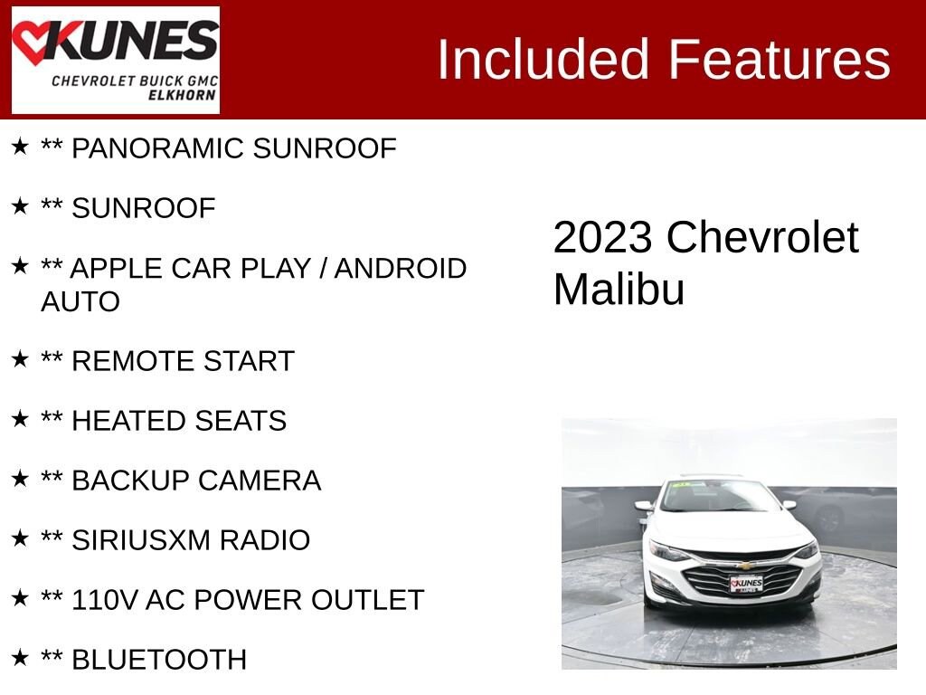 2023 Chevrolet Malibu LT 1LT 1.5L DOHC CVT FWD CARFAX One-Owner. 27/35 City/Highway MPG