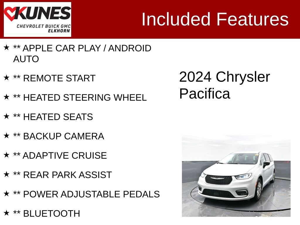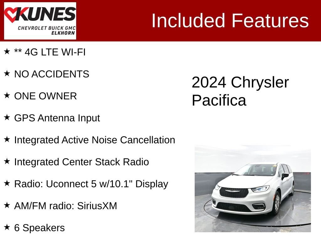 2024 Chrysler Pacifica Touring L 3.6L V6 24V VVT 9-Speed 948TE Automatic FWD Clean CARFAX. CARFAX One-Owner. Odometer is 3939 miles below market average! 19/28 City/Highway MPG