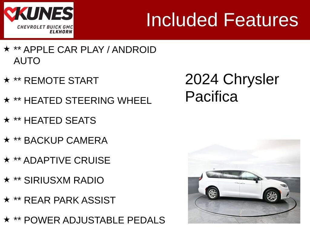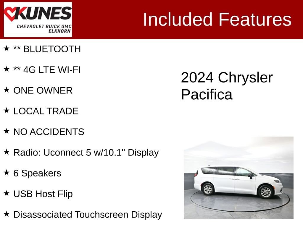 2024 Chrysler Pacifica Touring L 3.6L V6 24V VVT 9-Speed 948TE Automatic FWD Clean CARFAX. CARFAX One-Owner. Odometer is 809 miles below market average! 19/28 City/Highway MPG