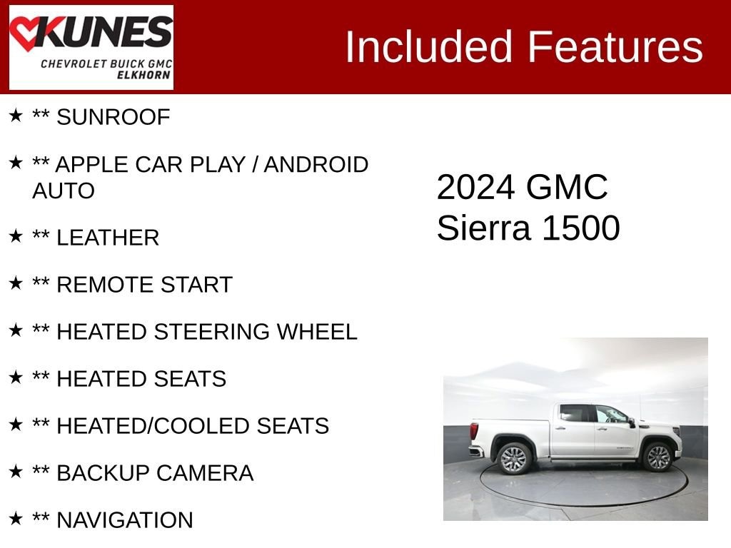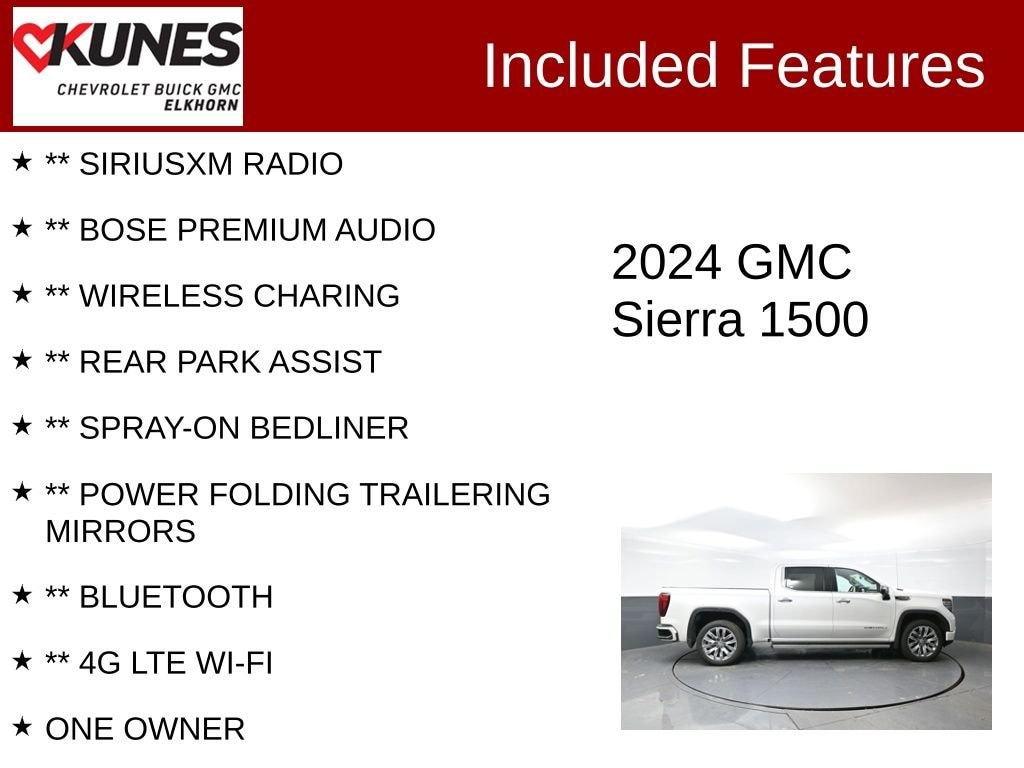 ** SUNROOF, ** APPLE CAR PLAY / ANDROID AUTO, ** LEATHER, ** REMOTE START, ** HEATED STEERING WHEEL, ** HEATED SEATS, ** HEATED/COOLED SEATS, ** BACKUP CAMERA, ** NAVIGATION, ** SIRIUSXM RADIO, ** BOSE PREMIUM AUDIO, ** WIRELESS CHARING, ** REAR PARK ASSIST, ** SPRAY-ON BEDLINER, ** POWER FOLDING TRAILERING MIRRORS, ** BLUETOOTH, ** 4G LTE WI-FI, ONE OWNER, LOCAL TRADE, 10-Speed Automatic, 4WD, Jet Black Leather, 12-Way Power Driver Seat Adjuster w/Lumbar, 12-Way Power Passenger Seat Adjuster w/Lumbar, 120-Volt Bed Mounted Power Outlet, 120-Volt Interior Power Outlet, 2 Charge/Data USB Ports Inside Center Console, 2 Type-C Charge-Only Rear USB Ports, 2 USB Ports, Adaptive suspension, Alloy wheels, Apple CarPlay/Android Auto, Auxiliary External Transmission Oil Cooler, Bed View Camera, Buckle to Drive, Bumpers: body-color, Chrome Recovery Hooks, Color-Keyed Carpeting Floor Covering, Compass, Denali Premium Suspension w/Adaptive Ride Control, Driver door bin, Driver vanity mirror, Emergency communication system: OnStar and GMC connected services capable, Enhanced Automatic Emergency Braking, Floor-Mounted Center Console, Following Distance Indicator, Forge Perforated Leather Seat Trim, Front Bucket Seats, Front Center Armrest, Front Pedestrian Braking, Front reading lights, Front wheel independent suspension, Garage door transmitter, Genuine wood console insert, Genuine wood dashboard insert, Genuine wood door panel insert, GMC Connected Access Capable, HD Surround Vision, Heated 2nd Row Outboard Seats, Heated Driver & Front Outboard Passenger Seating, Heated front seats, Heated rear seats, Hill Descent Control, Hitch Guidance, In-Vehicle Trailering System App, Integrated Trailer Brake Controller, LED Cargo Area Lighting, Low tire pressure warning, Navigation System, OnStar & GMC Connected Services Capable, Outside temperature display, Overhead console, Panic alarm, Passenger door bin, Passenger vanity mirror, Perimeter Lighting, Power Front Passenger Windows w/Express Up/Down, Power Front Windows w/Driver Express Up/Down, Power passenger seat, Power Rake & Telescoping Steering Column, Power Rear Windows w/Express Down, Power Sunroof, Premium audio system: GMC Infotainment System, Premium Bose 7-Speaker Sound System, Radio data system, Radio: Premium GMC Infotainment Audio System, Rear Camera Mirror, Rear Cross Traffic Braking, Rear Pedestrian Detection, Rear reading lights, Rear seat center armrest, Rear step bumper, Rear Wheelhouse Liners, Safety Alert Seat, SiriusXM w/360L, Speed-sensing steering, Split folding rear seat, Spray-On Pickup Bedliner w/Denali Logo, Tachometer, Tilt steering wheel, Trailer Side Blind Zone Alert, Trip computer, Ultrasonic Front & Rear Park Assist, Ventilated Driver & Front Passenger Seats, Ventilated front seats, Voltmeter, Wheel Locks (Set of 4) (LPO), Wheels: 20 x 9 Multi-Dimensional Polished Alum, Wheels: 22 x 9 Painted Aluminum, Wi-Fi Hotspot Capable, Wireless Charging.