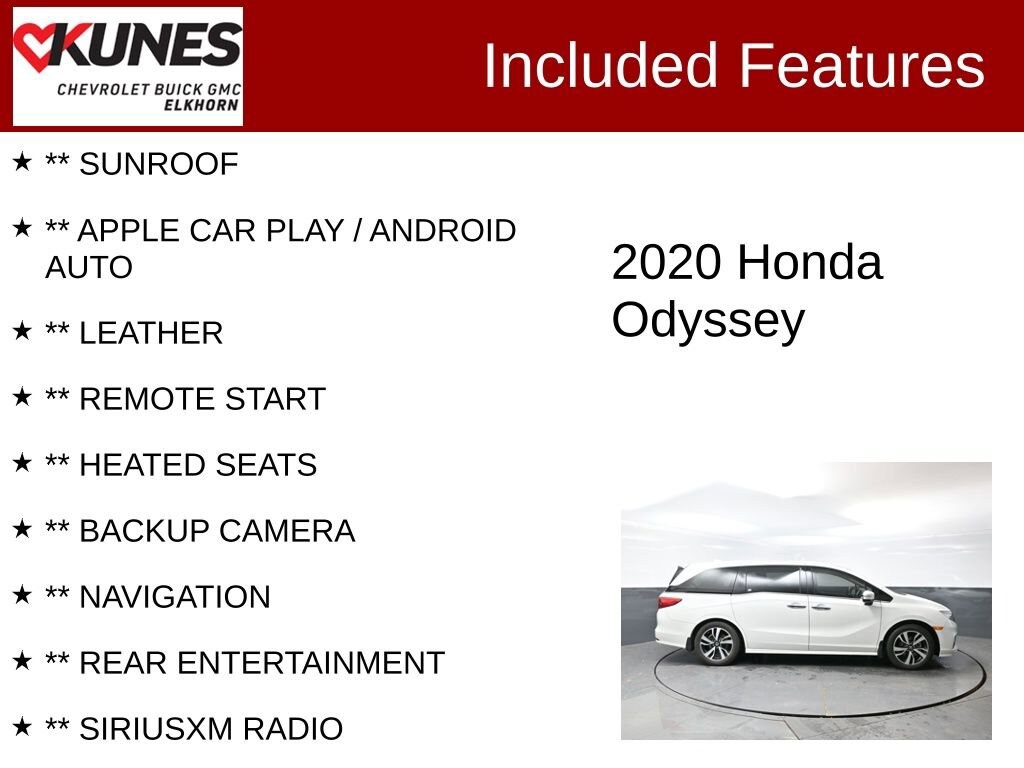 2020 Honda Odyssey Elite 3.5L V6 SOHC i-VTEC 24V 10-Speed Automatic FWD Clean CARFAX. 19/28 City/Highway MPG