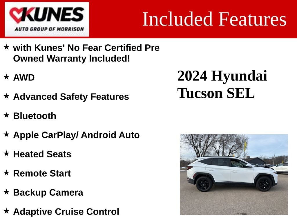 with Kunes' No Fear Certified Pre Owned Warranty Included!, AWD, Advanced Safety Features, Bluetooth, Apple CarPlay/ Android Auto, Heated Seats, Remote Start, Backup Camera, Adaptive Cruise Control, Option Group 01.