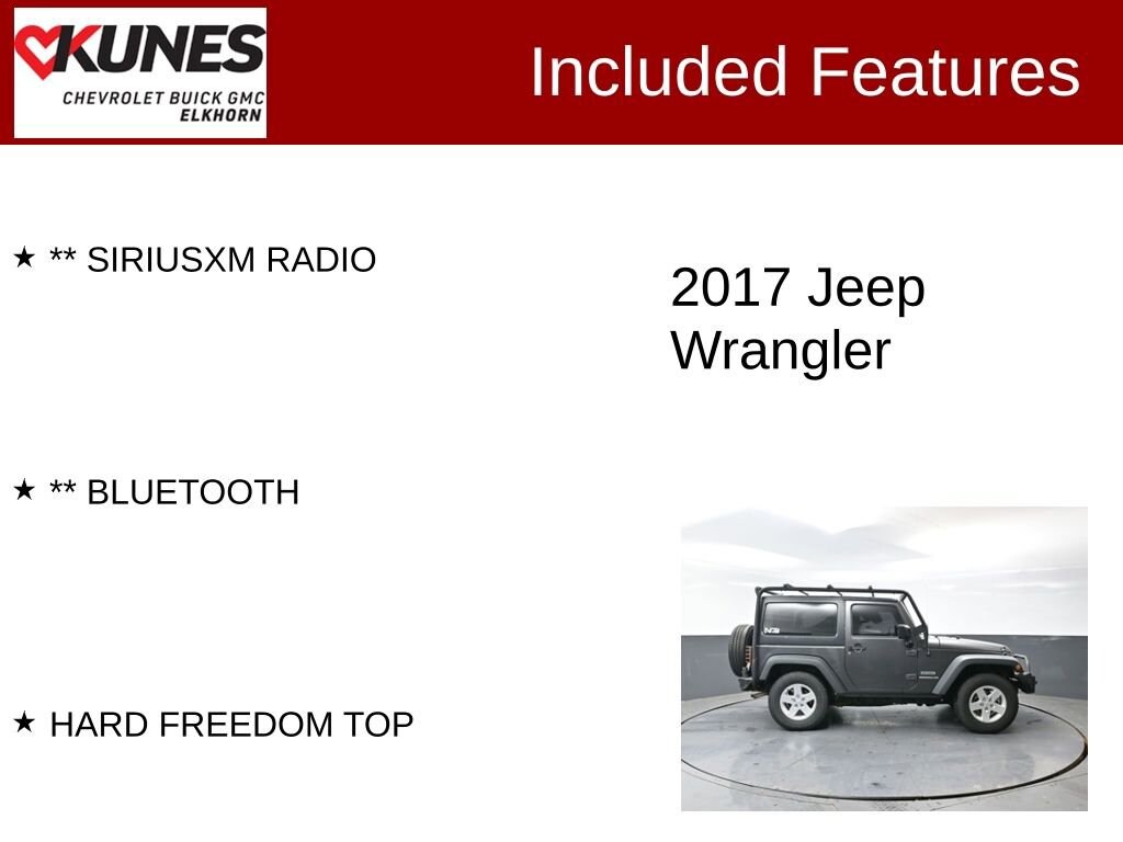 2017 Jeep Wrangler Sport 3.6L V6 24V VVT 5-Speed Automatic 4WD CARFAX One-Owner. Odometer is 22558 miles below market average!