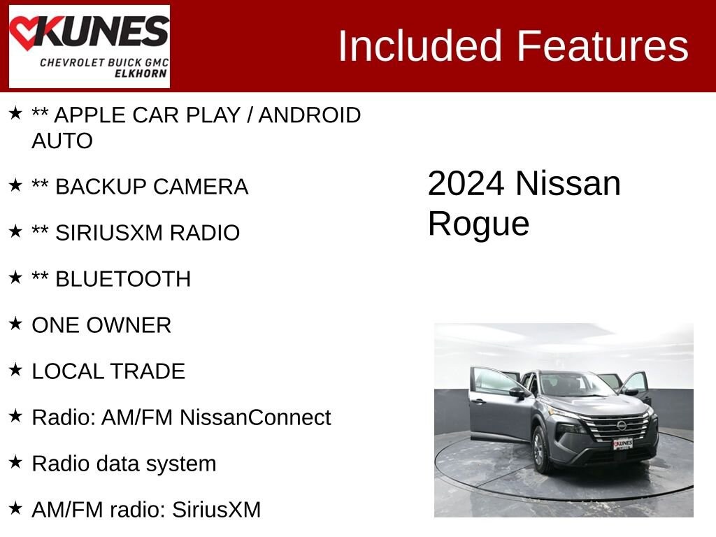 2024 Nissan Rogue S 1.5L DOHC CVT with Xtronic AWD CARFAX One-Owner. 28/35 City/Highway MPG