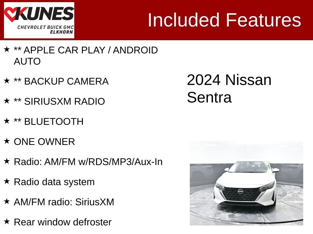 2024 Nissan Sentra SV 2.0L I4 DOHC CVT with Xtronic FWD Clean CARFAX. CARFAX One-Owner. 30/40 City/Highway MPG