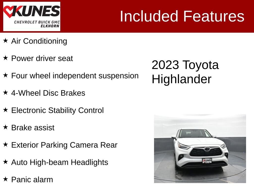 2023 Toyota Highlander L 2.4L I4 PDI Turbocharged DOHC 16V LEV3-SULEV30 265hp 8-Speed Automatic FWD Clean CARFAX. CARFAX One-Owner. 22/29 City/Highway MPG